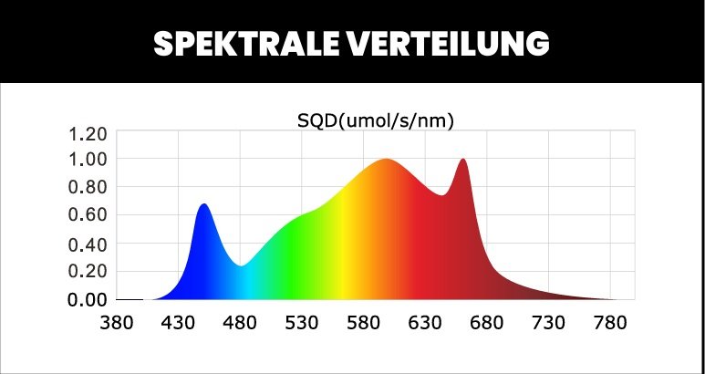 • Spektrum: Vollspektrum (Rot, Blau, Weiss)